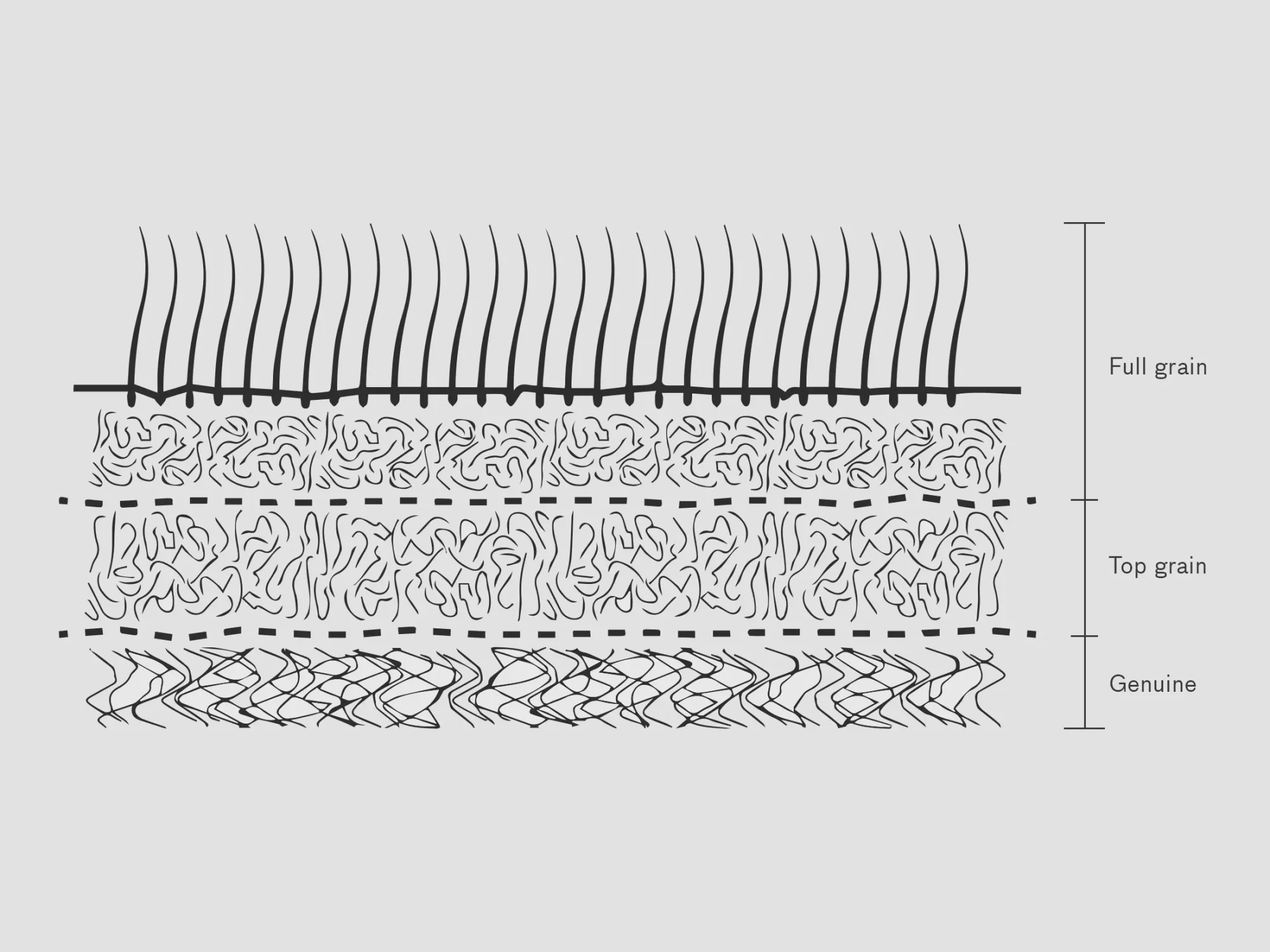 Genuine leather, while still lower-grade, is at least made from continuous layers of animal hide, offering slightly better durability and a more authentic feel. However, it still lacks the strength, breathability and character found in higher-grade leathers.